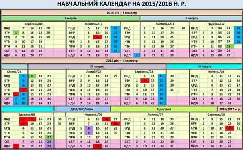 Відповідно до статті 16 Закону України «Про загальну середню освіту» структуру навчального року встановлюють загальноосвітні навчальні заклади за погодженням з місцевими органами управління освітою. Рекомендуємо навчальні заняття організувати за семестровою системою: